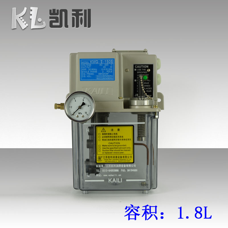KMG-IV-120型電動(dòng)潤(rùn)滑泵是我公司 研發(fā)的專利產(chǎn)品。油箱的容積為1.8L、3L、4L、5L采用德國(guó)原裝材料被美譽(yù)為透明金屬?蛻羧绻箐撝柒k金油箱可根據(jù)要求定做,該泵是一款自動(dòng)抵抗式集中潤(rùn)滑系統(tǒng)配置的產(chǎn)品,潤(rùn)滑泵的電壓有AC110V和AC220V可滿足不同客戶需求提供更多選擇。間隔潤(rùn)滑時(shí)間有潤(rùn)滑泵自帶的數(shù)顯微電腦控制,可以根據(jù)實(shí)際需要設(shè)定,配置失壓報(bào)警自動(dòng)化程度高獨(dú)立獨(dú)立微電腦控制。該泵與MG系列和XMB系列容積加壓式式計(jì)量件、XMB系列容積加壓式式計(jì)量件(整體鋁合金設(shè)計(jì)無需連接體)、LYQ8型濾油器、FX-3G濾油器、FX-5濾油器、PV、JV系列連接體。等管接件配套使用組成對(duì)機(jī)械設(shè)備定時(shí)定量自動(dòng)集中潤(rùn)滑為您的設(shè)備,降低油耗、提高使用壽命、提高加工精度、降低故障率、為您的設(shè)備保駕護(hù)航。也可致電我公司咨詢0515-84213666或者13770139320----QQ598425079我們將以最專業(yè)和 質(zhì)的技術(shù)服務(wù),可為客戶提供量身定做設(shè)計(jì)集中潤(rùn)滑系統(tǒng)方案。詳情了解和訂貨可參照樣本33頁,沒有樣本可到我公司官方網(wǎng)站下載   |