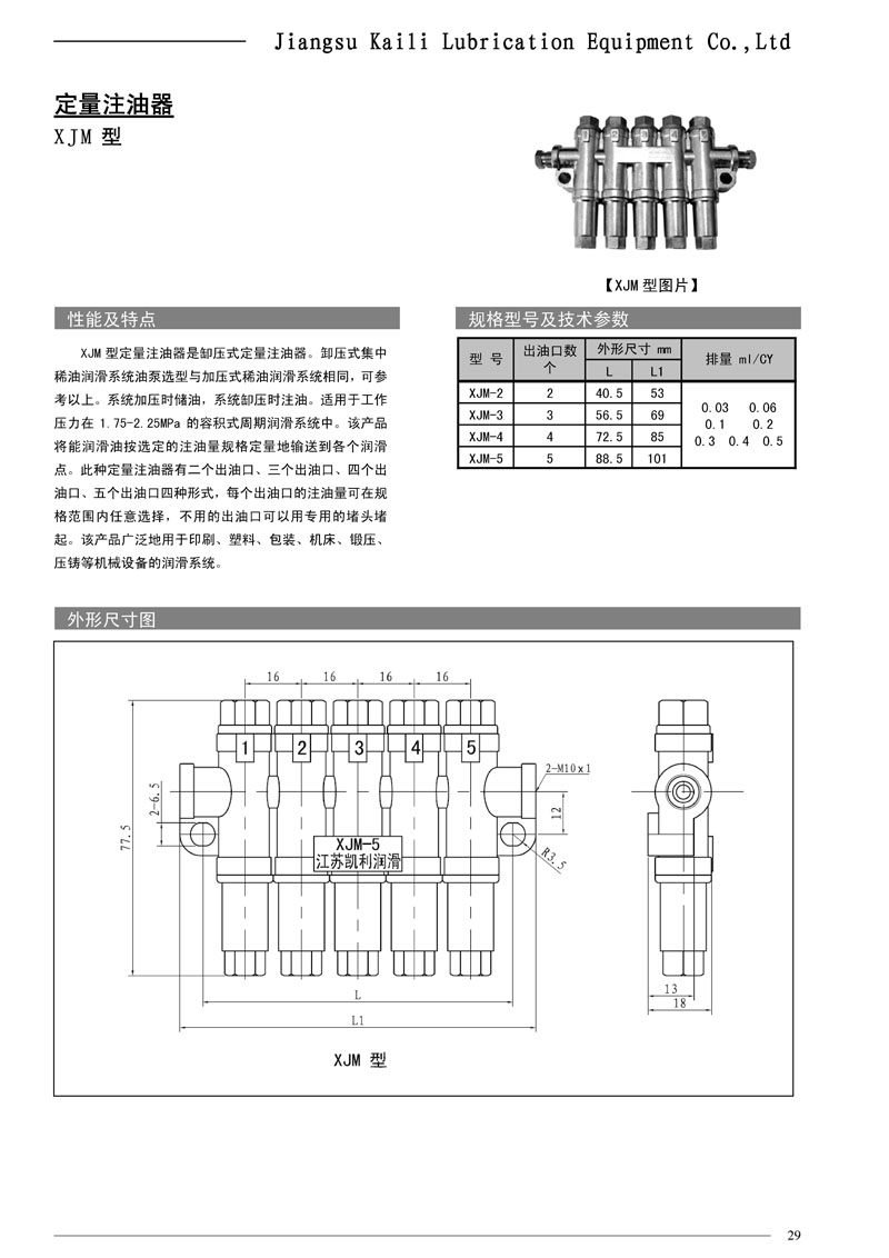 XJM-5 五通檢知容積式分配器 分油器 定量分配器 注油器