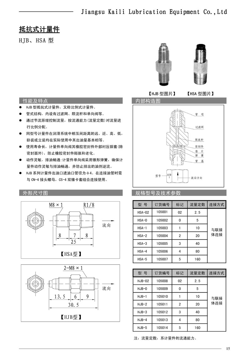 HJB計量件 抵抗式比例分配器 抵抗式計量件 潤滑泵用計量件